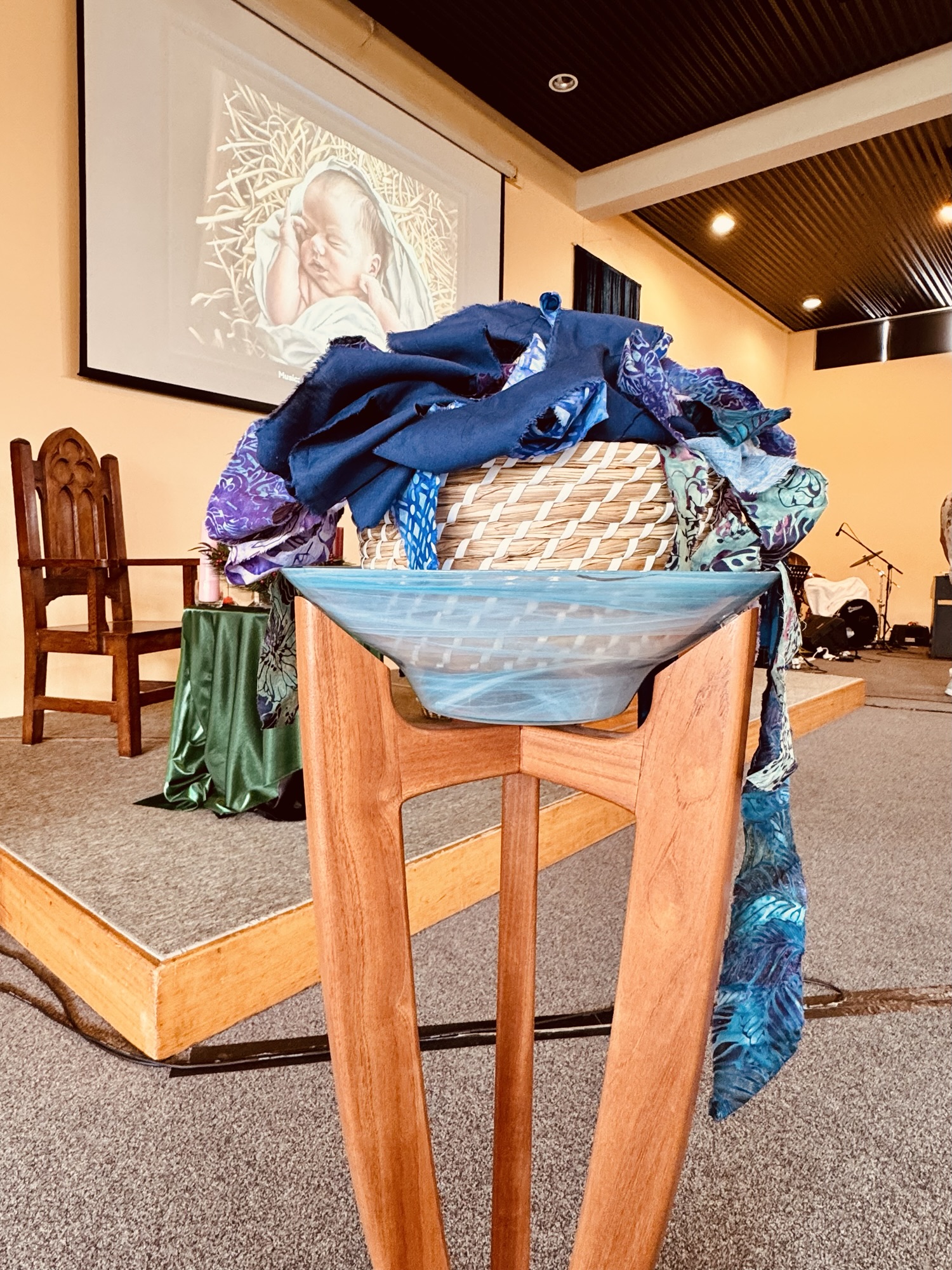 Set after the lighting of memory candles for those who have died and before a “cloth for the cradle” response in which torn fabric strips are laid in a bare manger.