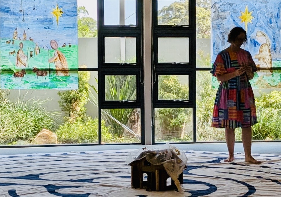 The text for the “living story sermon” is below with wondering questions in bold. People should be encouraged to respond or reflect together. For this week, we are laying a large labyrinth out in front of the communion table with the stable scene set. Three volunteers will walk the labyrinth – bearing gifts – as the story unfolds. I have also incorporated two songs by community groups – carol about Jesus being born in Bethelehem in Bari, and “the little drummer boy” by our local ukulele group.